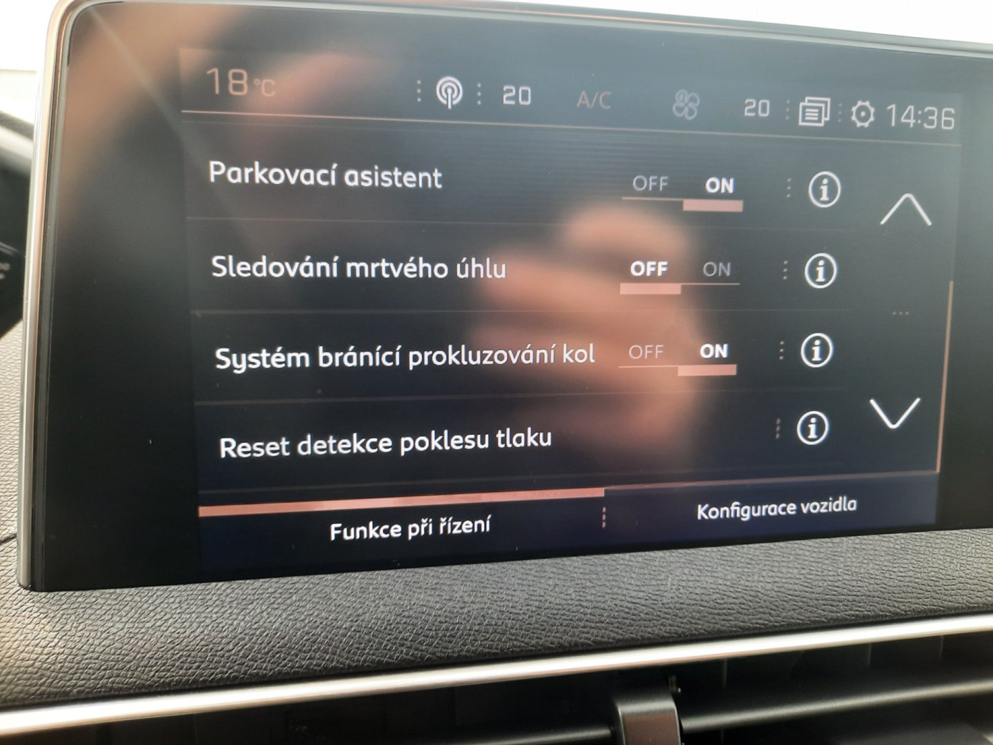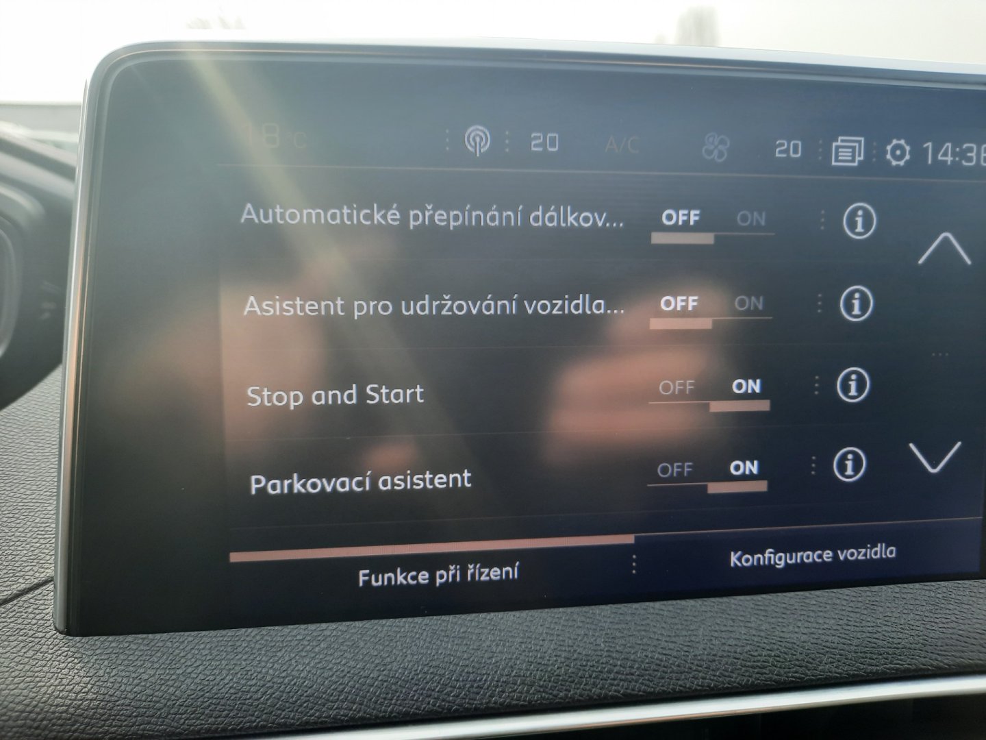 Parkovací senzory, Parkovací senzory přední, Parkovací senzory zadní, Rozpoznávání dopravních značek, Tempomat